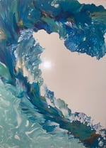 Catch the wave and ride into this amazing Dutch Pour flow of Turquoise Blue, Pearl Ocean Blue, Gold, and Viridian in a sea of Master's Touch "Ocean Green", sealed in Liquitex High Gloss varnish! Introducing "Beach Splash", a 18x24 inch canvas piece from the “Vibrant Seas” collection, a series of artwork that reflects a colorful, deep dive into your imagination!